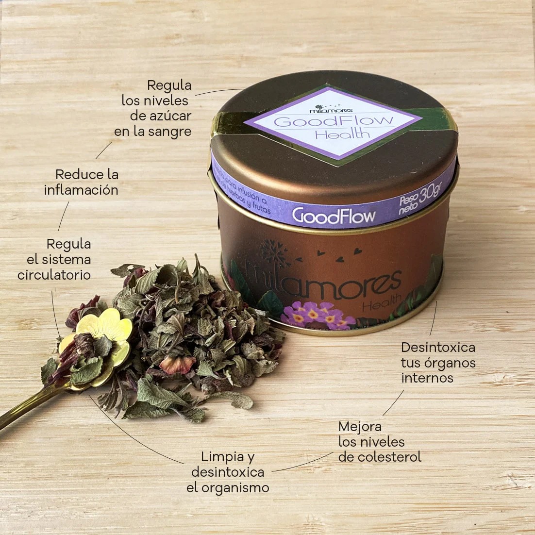 Las propiedades diuréticas de la flor de Jamaica y el cidrón, a las que también se le atribuyen efectos hipoglucemiantes porque ayudan a disminuir los niveles de azúcar en la sangre; el limón, cuyos ácidos cítricos benefician la eliminación de grasa y la limpieza de toxinas presentes en la sangre y el jengibre que estimula la circulación sanguínea, son los ingredientes que la naturaleza pone en nuestras manos y que componen la receta perfecta de GoodFlow.